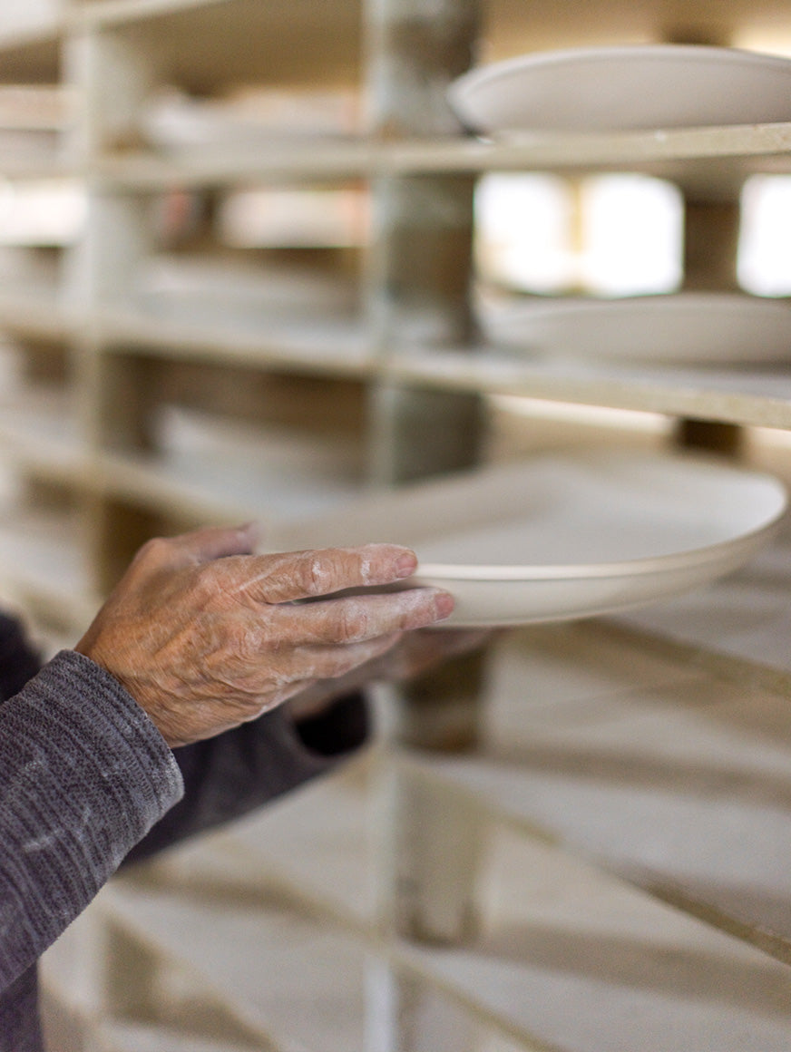 Bien que cette cuisson rende la céramique irréversible à l’état d’argile, nous récupérons les fragments sous forme de granulats de céramique pour les intégrer dans de nouvelles créations, renforçant ainsi chaque pièce tout en réduisant les déchets.